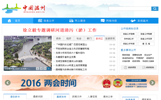 1.政府网站。市、县两级全部在政府门户网站上设立专栏,集中发布本级行政机关主动公开的政府信息,并根据不同时期的社会关注热点和社会需求,设置重点栏目,方便社会公众对热点、焦点信息的查询。温州市政府门户网站(如图3)在全国性政府网站绩效评估活动中列地市级第2名。