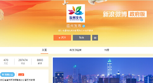 2.政务微博。推进政务微博、微信等新媒体政务信息发布平台建设,积极打造以“温州发布”(如图4)为龙头、集纳11个县(市、区)、近120家市直部门的“政务发布大厅”,已累计吸引粉丝近60万。全年在新浪微博、腾讯微博累计发布各类信息1万余条,发布政务微信1800多条。