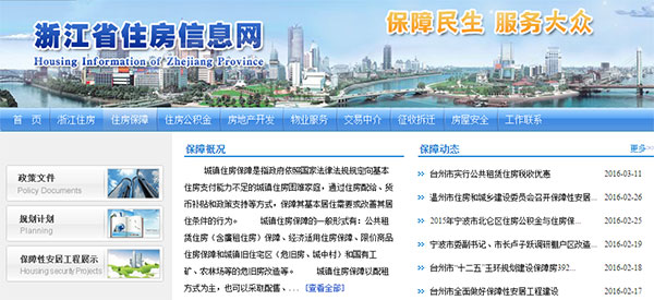 一是做好城镇保障性安居工程特别是棚户区改造建设项目、保障性住房分配信息公开工作。在浙江省住房信息网上设置了住房保障政策文件、各地住房保障动态、全省保障规划计划、年度计划实施进度及部分保障性安居工程项目信息等内容,方便公众了解全省住房保障工作情况。加大全省棚户区改造建设项目信息公开力度,及时公开棚户区改造政策、保障性安居工程年度建设计划、开竣工完成情况及项目详细信息等公众关注的内容。杭州市通过“杭州建设”政务微博、微信平台发布权威信息;宁波市开设了宁波市棚户区改造工作专栏;温州市定期向社会通报全市保障性住房建设的进展情况,每月公布一次年度城镇保障性住房目标责任情况、保障性住房开竣工项目信息、在建保障性住房项目信息。