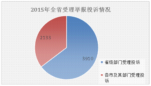 省政府办公厅和省监察厅均设立了接受公众举报和投诉的公开电话,各地、各部门政府信息公开查阅和受理点都设立了政府信息公开意见监督投诉箱,广泛听取意见,自觉接受社会评议和群众的举报、投诉和监督。2015年,全省共接到各类投诉6043件,比上年有所下降。其中,省级部门收到举报投诉3910件,各市及其部门收到举报投诉2133件,均做了妥善处理。