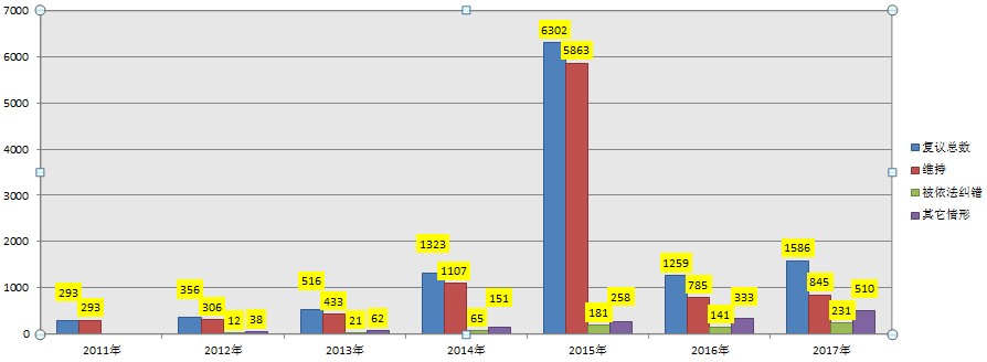 2011—2017年,全省因政府信息依申请公开引起的行政复议情况如下图: