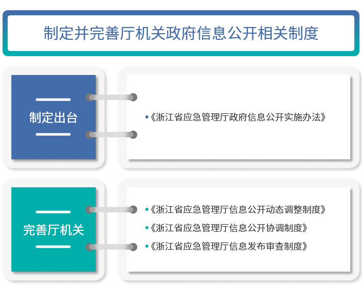 (一)加强政务公开管理。应急管理厅自组建成立后,厅党委高度重视政务公开工作,将政务公开工作纳入对全厅各个处室的年度绩效考核工作当中,查补工作短板,制定出台《浙江省应急管理厅政府信息公开实施办法》,完善厅机关政府信息公开发布机制、审查机制、协调机制和动态调整机制,最大限度满足人民群众知情权,原则上除秘件外,都要求主动公开。举办全省应急管理系统新闻宣传和政务信息培训班,深入学习新修订的《中华人民共和国政府信息公开条例》和《浙江省政府信息公开暂行办法》及其实施细则,着力提升政务公开队伍的思想认识,提高信息发布、政策解读、回应关切的能力水平,努力构建“职责明确、分工合理、各负其责、运转高效、合力共推”的政务公开“一盘棋”工作格局。