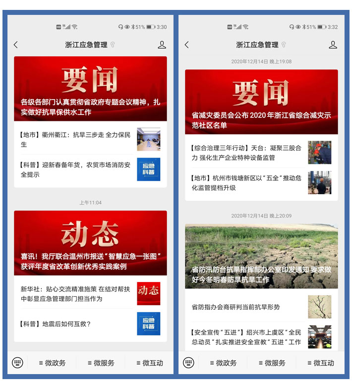 (二)丰富主动公开载体。充分利用门户网站、微信公众号等新媒体平台,拓宽信息公开渠道。微信公众号保持每日更新,在汛期、台风季等特殊时段,主动发布安全提示,提醒做好安全防范工作。及时转发重大事故等突发事件的官方权威信息,正确引导社会舆论。全年累计发布各类信息1500余条次,粉丝数量增至20万余人,显著提升了民众对应急管理工作的知晓参与程度。同时积极推行使用新媒体发布信息,全年共举行新闻发布会四场(含一场电视专访),新闻通报会1场,集中采访8场,通报了2020年应急管理相关工作开展情况及成效。此外,厅主要领导还通过视频解读全民安全素养提升三年行动计划,与网民进行互动交流。