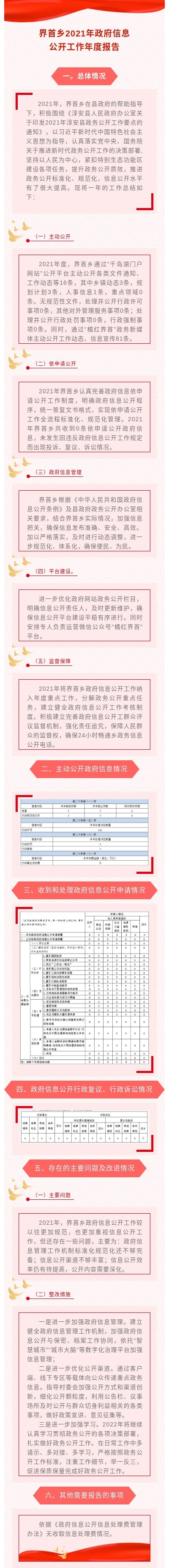 (二)依申请公开情况。2021年界首乡认真完善政府信息依申请公开工作制度,明确政府信息公开程序,统一答复文书格式,实现依申请公开工作全流程标准化、规范化管理。2021年界首乡共收到0条依申请公开政府信息,未发生因违反政府信息公开工作规定而出现投诉、复议、诉讼情况。