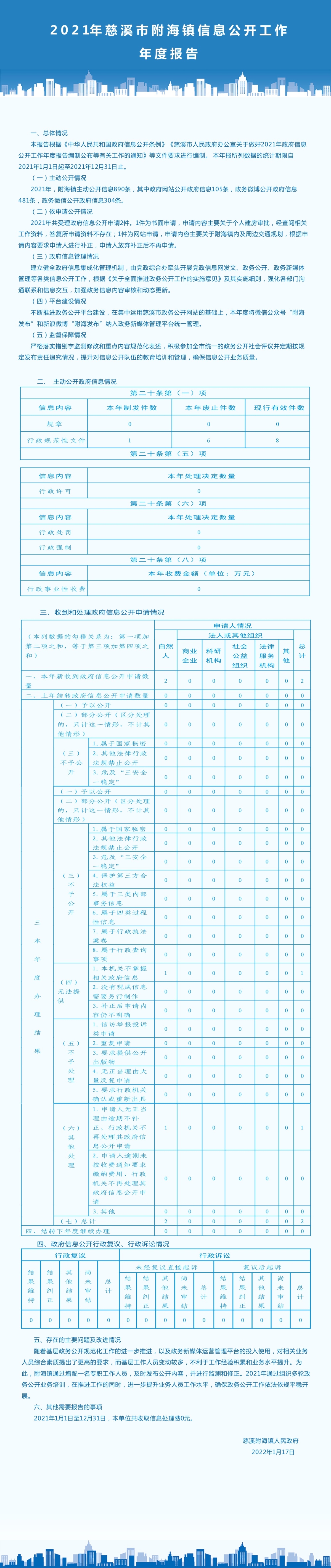 2021年宁波市慈溪市附海镇人民政府信息公开年报