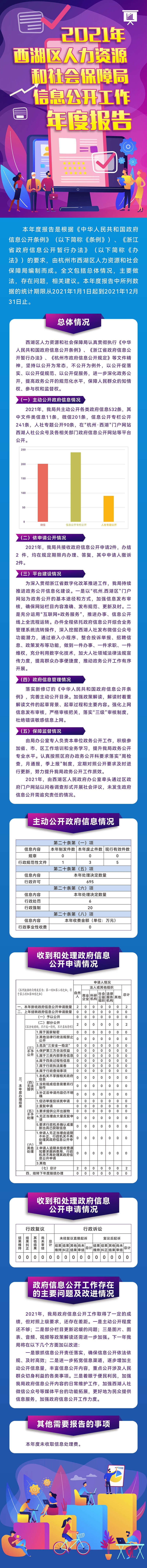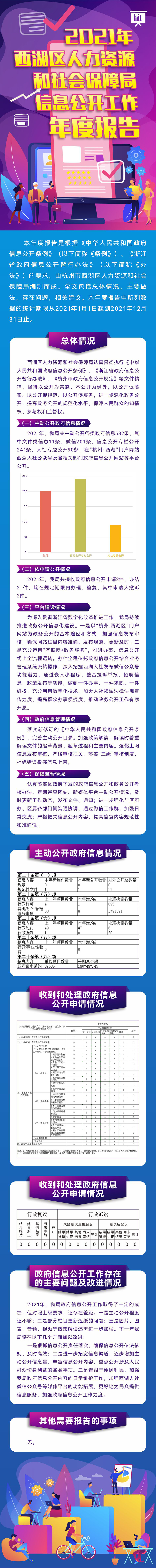 2021年,我局共主动公开各类政府信息532条,其中文件类信息11条,微信201条,信息公开专栏公开241条,人社专题公开90条,在“杭州·西湖”门户网站西湖人社公众号及各相关部门政府信息公开网站等平台公开。