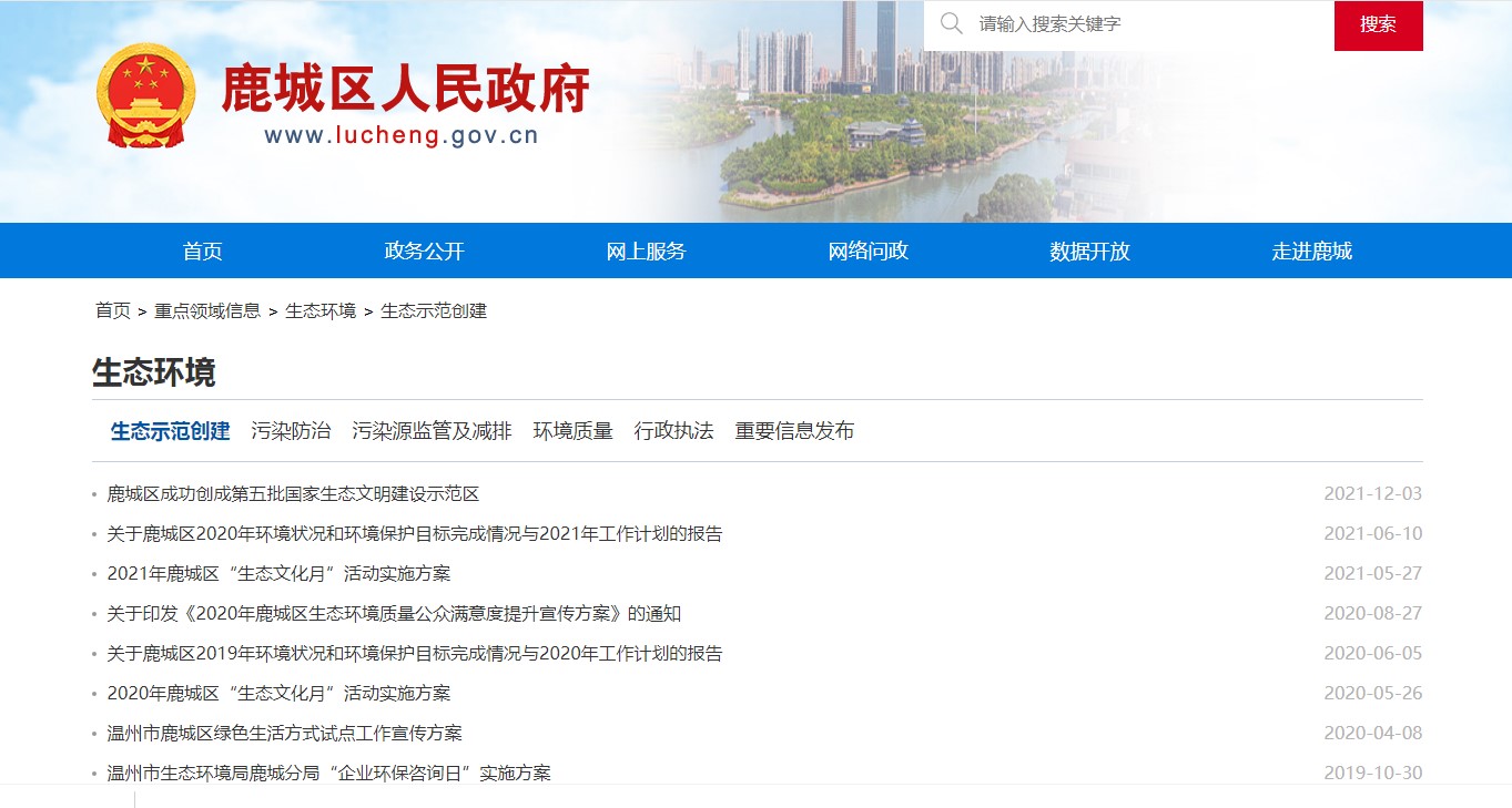 温州市生态环境局鹿城分局2021年政府信息公开工作年度报告图文解读