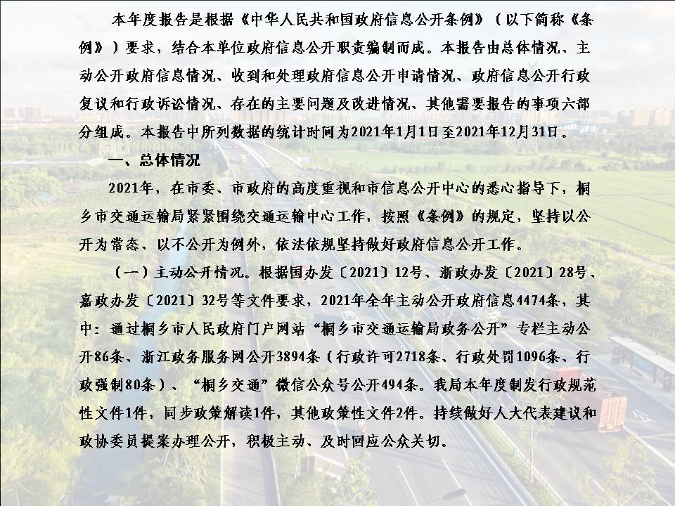 桐乡市交通运输局2021年度政府信息公开工作年度报告