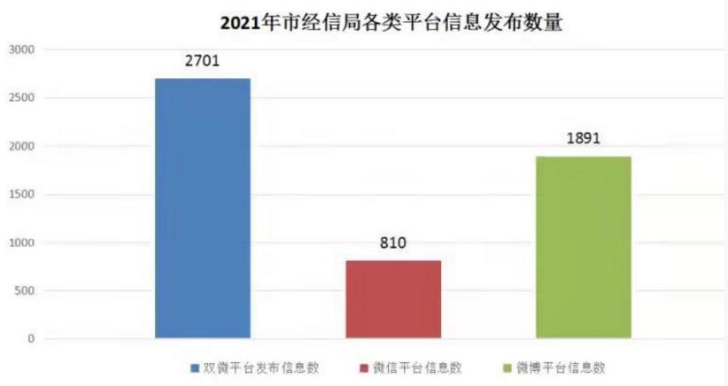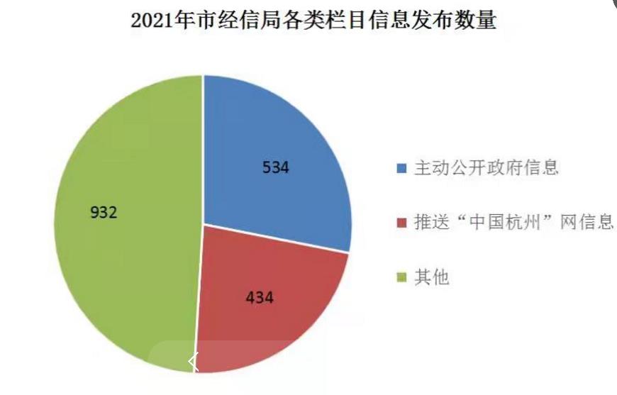 根据年度杭州市政务公开工作要点的要求,在中国杭州门户网站及市经信局门户网站的信息公共栏目建立重点领域公开目录工作,围绕推动数字经济和制造业高质量融合发展、服务企业转型升级、打造重点产业集群等重点领域,局门户网站主动公开政府信息534条,向“中国杭州”推送信息434条,其他工作信息932条。积极运用微信、微博、官方网站等政务新媒体,及时发布各类权威政务信息,充分利用政务新媒体互动功能,回应公众关心关切。2021年1-12月,局“双微”平台共发布信息2701条(其中微信发布810条,微博发布1891条)。