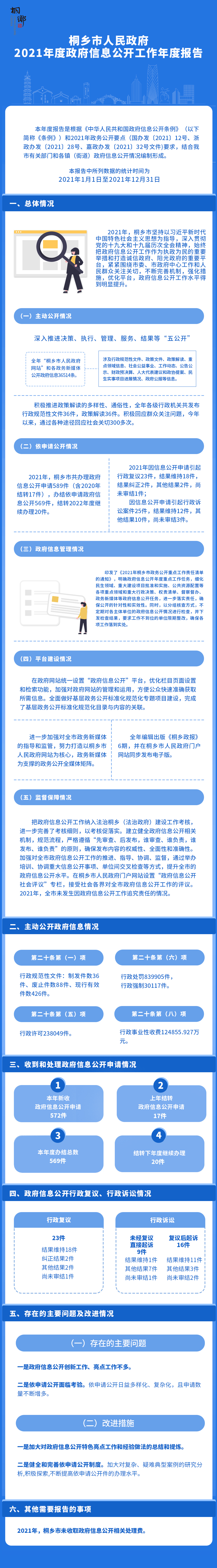 2021年,桐乡市坚持以习近平新时代中国特色社会主义思想为指导,深入贯彻党的十九大和十九届历次全会精神,始终把政府信息公开工作作为执政为民的重要举措和打造诚信政府、阳光政府的重要平台,紧紧围绕市委、市政府中心工作和人民群众关注关切,不断完善机制,强化措施,优化平台,政府信息公开工作水平得到明显提升。