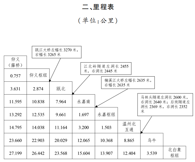温州绕城高速公路北线车辆通行费收费标准及里程表