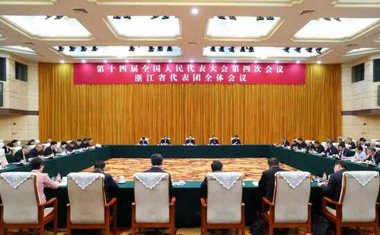 9日下午,浙江代表团审议全国人大常委会工作报告。
